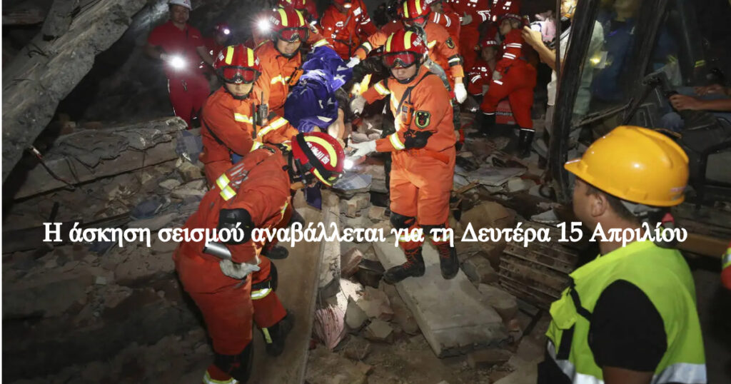 ΑΝΑΒΑΛΛΕΤΑΙ ΓΙΑ ΤΗ ΔΕΥΤΕΡΑ 15 ΑΠΡΙΛΙΟΥ Η ΕΠΙΧΕΙΡΗΣΙΑΚΗ ΑΣΚΗΣΗ ΣΕΙΣΜΟΥ