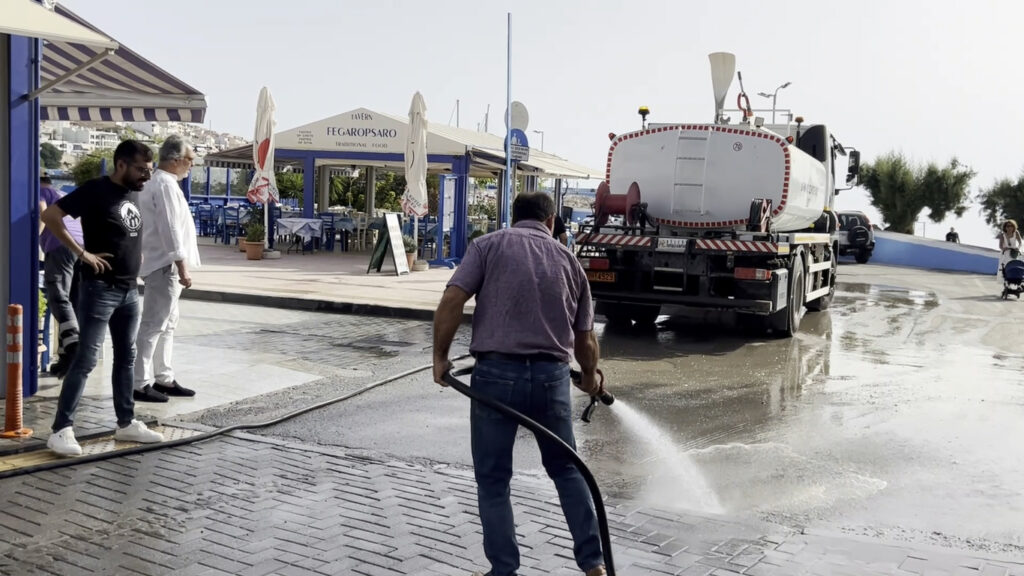Από τις πρώτες πρωινές ώρες σήμερα, εργασίες καθαρισμού πραγματοποιούνται με τη συνδρομή της Υπηρεσίας Καθαριότητας και με την επίβλεψη του Λιμενικού Ταμείου, προκειμένου να αποκατασταθεί η εύρυθμη λειτουργία των καταστημάτων κατά μήκος του λιμανιού.