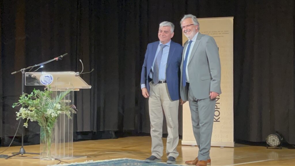 Ο Δήμαρχος Σητείας στον χαιρετισμό του αναφέρθηκε στις αλληλένδετες έννοιες «ΣΗΤΕΙΑ και ΚΟΡΝΑΡΟΣ», στην σημαντική συμβολή της “Στέγης Βιτσέντζος Κορνάρος” στην ανάδειξη και διάδοση του έργου του μεγάλου μας ποιητή αλλά και στην απόφαση του ιδίου και του Δημοτικού Συμβουλίου για την αναγόρευση σε επίτιμο δημότη Σητείας του Στέφανου Κακλαμάνη