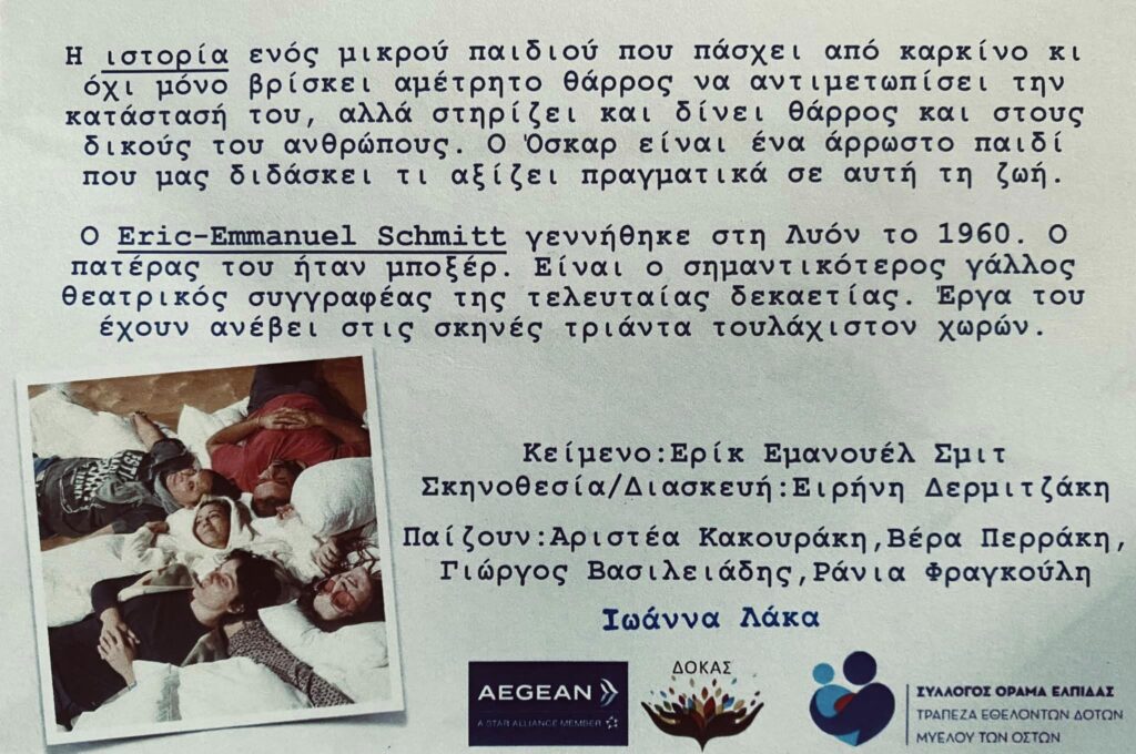 ΠΑΡΑΣΤΑΣΗ “ΟΣΚΑΡ – ΓΡΑΜΜΑ ΣΤΟΝ ΘΕΟ”