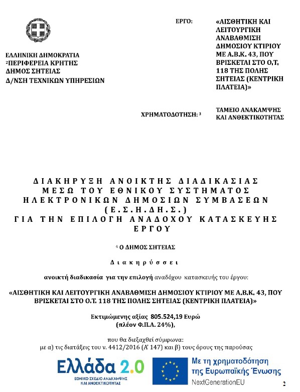 Αρχεία Αρχεία Διαγωνισμού – 10.44 MB Φύλλο συμμόρφωσης – 32.83 KB ΠΡΟΚΗΡΥΞΗ – 2.05 MB Διακήρυξη – 22.95 MB