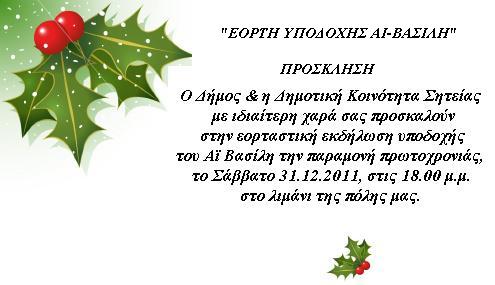 30-12-2011. ΕΟΡΤΑΣΤΙΚΗ ΕΚΔΗΛΩΣΗ ΥΠΟΔΟΧΗΣ Αϊ-ΒΑΣΙΛΗ